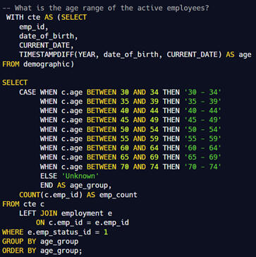 Business Case: Analyze employee data for insights and provide recommendations to Human Resources department.Data Overview: Dataset from Kaggle with 311 rows and 36 columns. Used Power Query to separate into 9 tables.Skills: SQL - multiple joins, CTEs, window functions, CASE WHEN statements, pivoting data, data manipulation; Excel - Power Query, pivot tables, data cleaning, data transformation, data modeling.