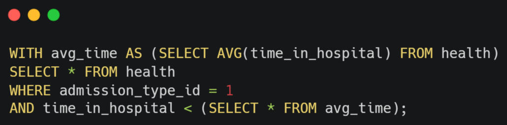 (3) Who are the patients that had an emergency but left the hospital faster than average?Data Overview: Dataset from Kaggle with 101,766 rows and 50 columns.Skills: MySQL queries using intermediate SQL including RPAD, HAVING, JOIN, CASE WHEN, UNION, CTEs, subqueries, CONCAT.