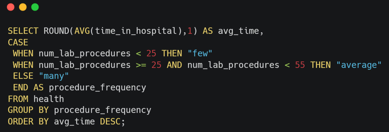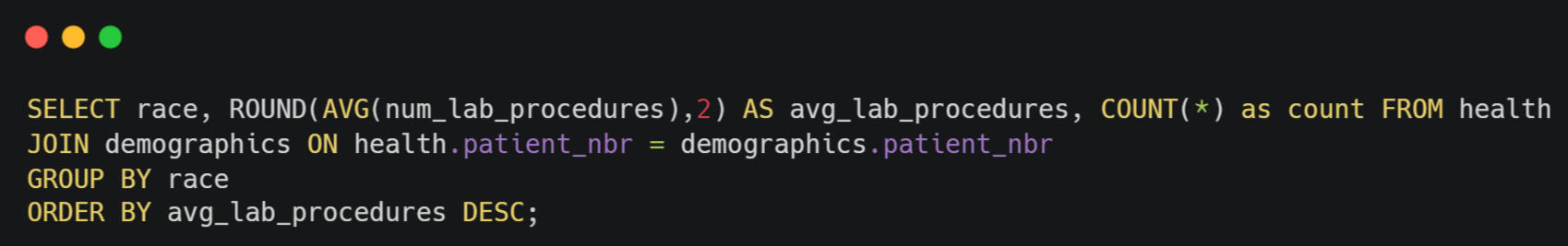 (3) Who are the patients that had an emergency but left the hospital faster than average?Data Overview: Dataset from Kaggle with 101,766 rows and 50 columns.Skills: MySQL queries using intermediate SQL including RPAD, HAVING, JOIN, CASE WHEN, UNION, CTEs, subqueries, CONCAT.